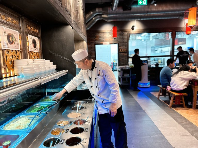 杜塞尔多夫的小龙坎火锅店位置很方便,坐落在市中心,来回挺方便的。店里的装修风格走的是传统的中式路线,大红灯笼和木雕装饰一进门就能看见,很有国内火锅店的感觉。店内空间宽敞,桌子之间的距离也拉得比较开,不会有那种拥挤感,特别适合一群人来聚餐。